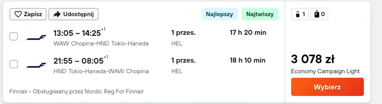 Wylot z Warszawy do Tokio (we własnym zakresie).