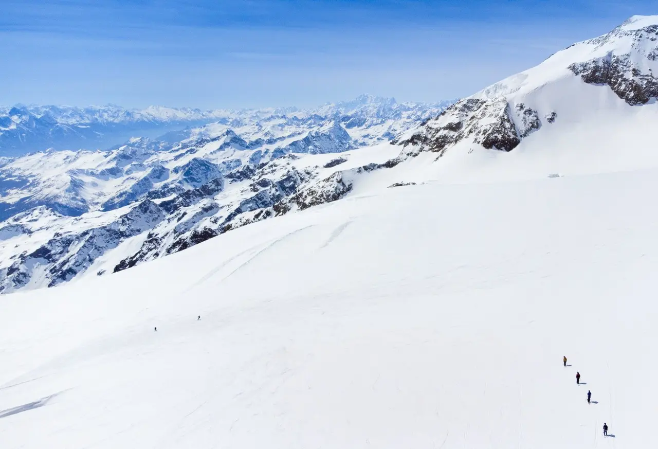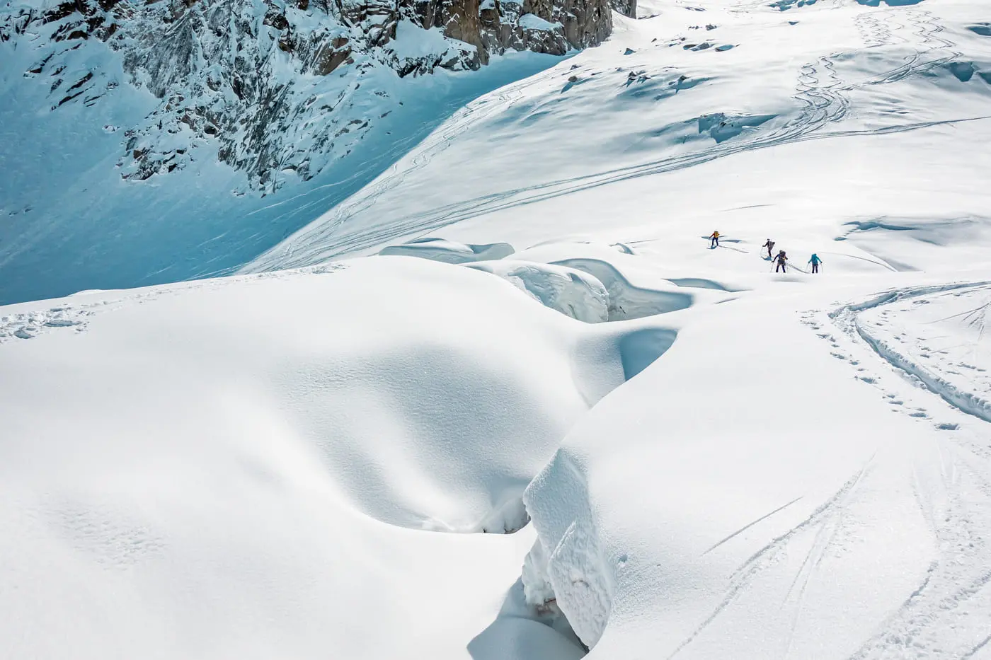 - Zaliczymy kultowe Vallée Blanche – z Courmayeur wjedziemy kolejką na Punta Helbronner 3462m skąd zjedziemy lodowcem do Chamonix.