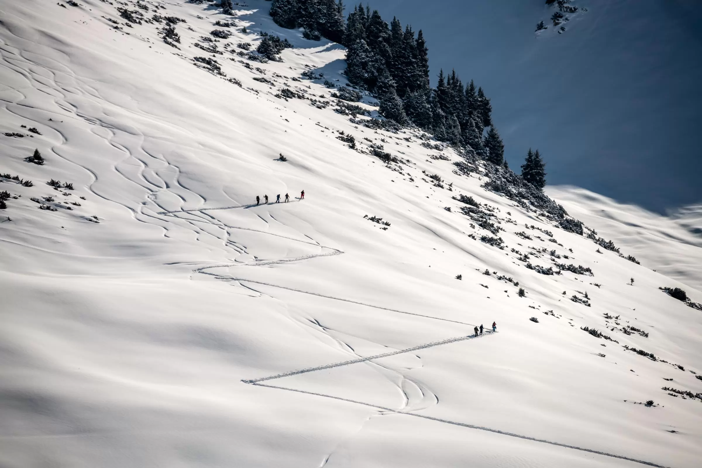 - doboru trasy w kontekście zagrożenia lawinowego, naukę dobierania linii podejścia i zjazdu,
